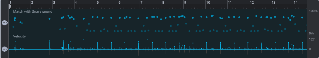 - Generate MIDI: Tracker will analyze the audio and intelligently detect every snare hit, converting the performance into a MIDI clip. Crucially, it doesn’t just detect the timing; it also analyzes the dynamics of the performance and translates that into MIDI velocity. The MIDI you get from Tracker isn’t a static, robotic pattern—it has the human drummer’s feel baked right in.